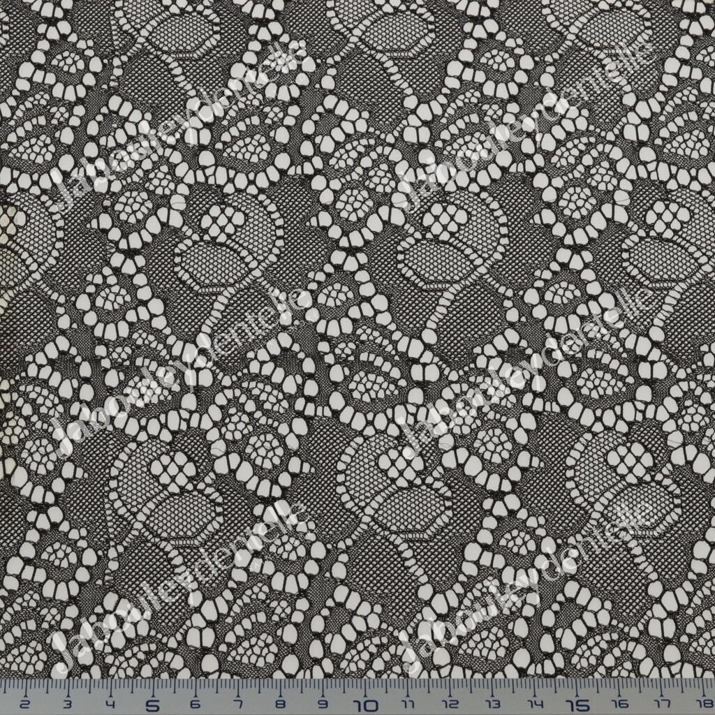 Dentelle Jacquard en laize rigide et fine, avec joli motif floral.