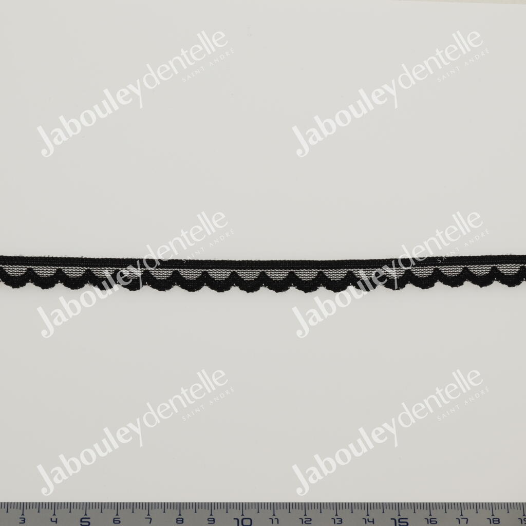 Rachel Stretch Ribbon Lace, with a simple scalloped pattern on a tulle background.