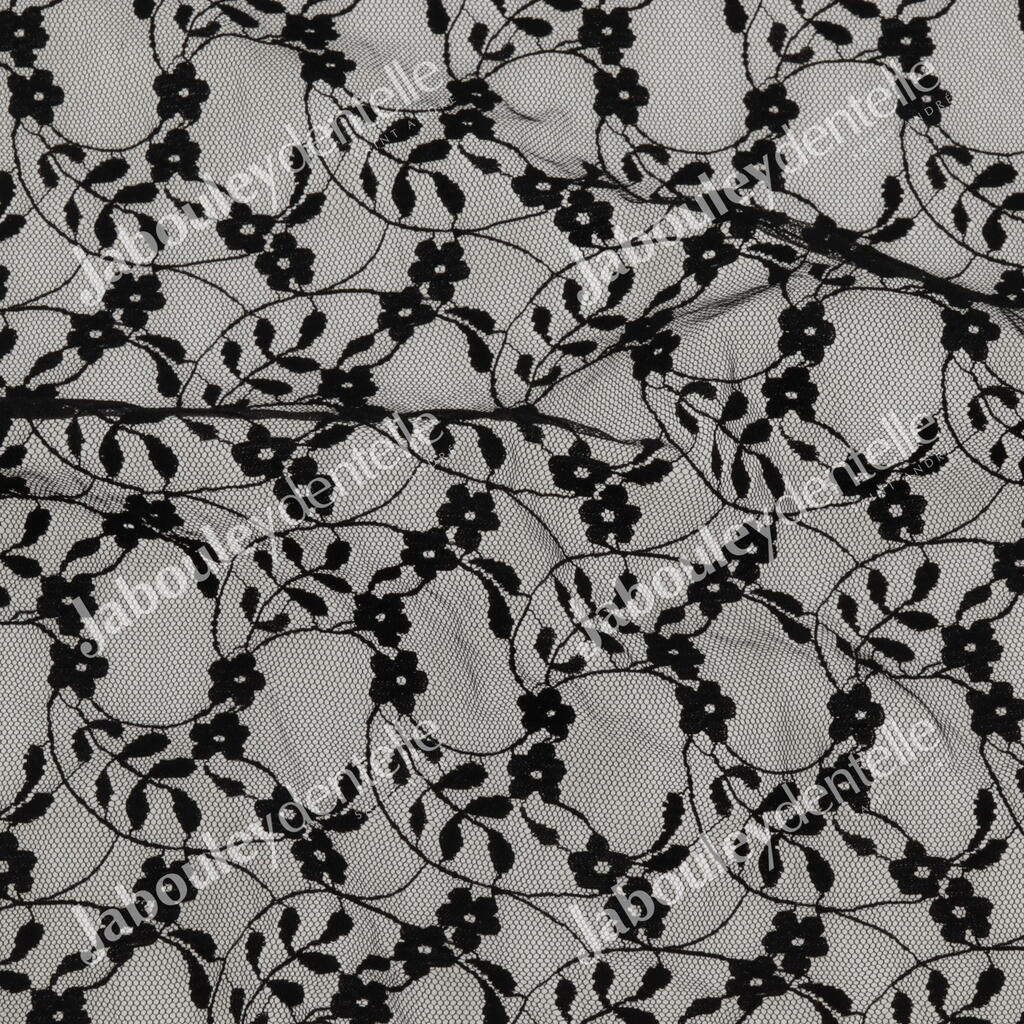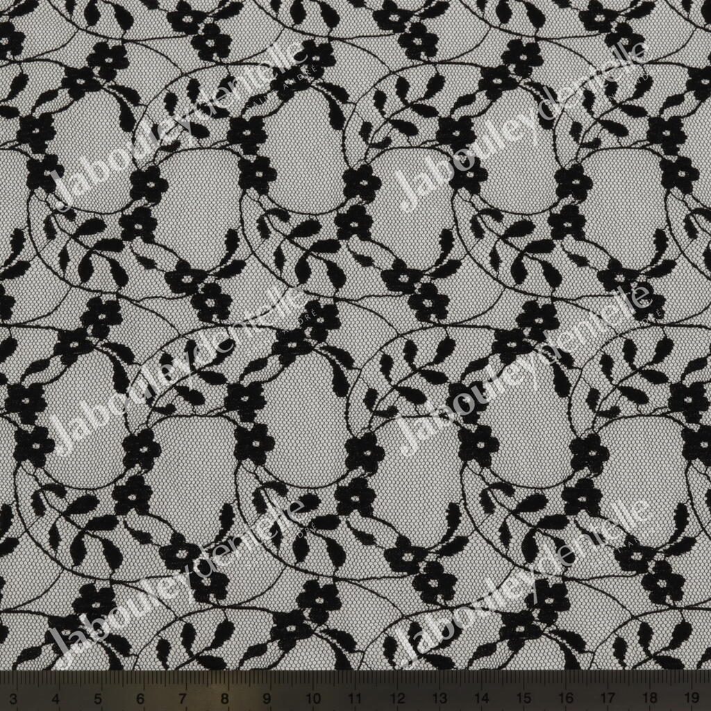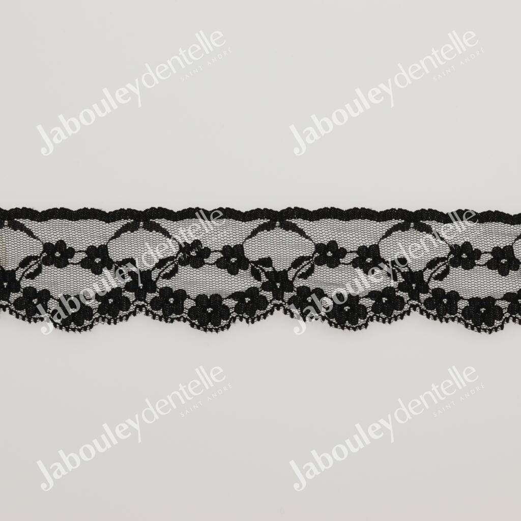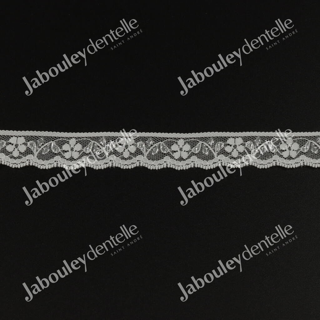 Dentelle Rachel en laize rigide et fine, avec un joli motif floral.
