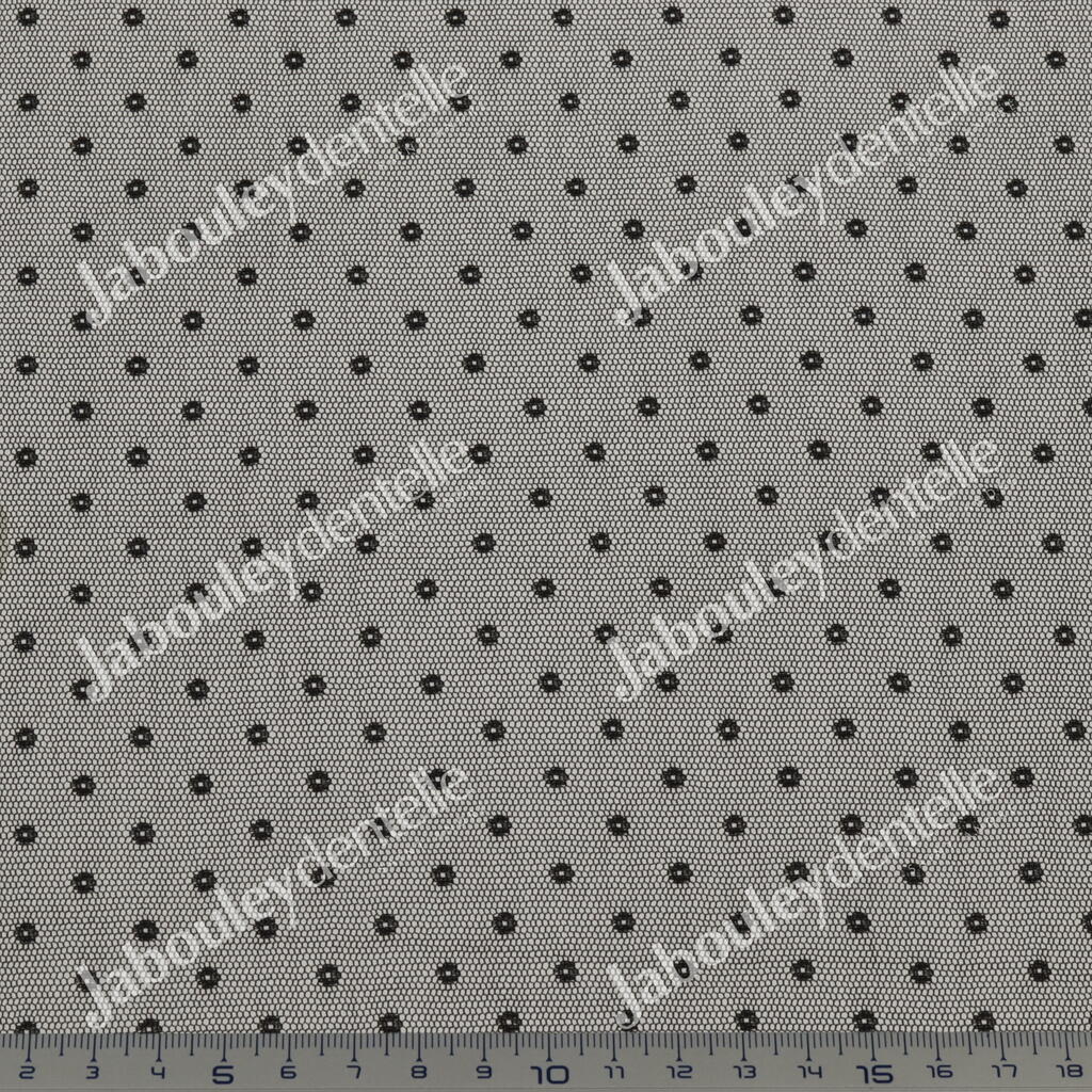 Dentelle Rachel en laize, rigide et fine, avec joli et original motif plumetis troué.