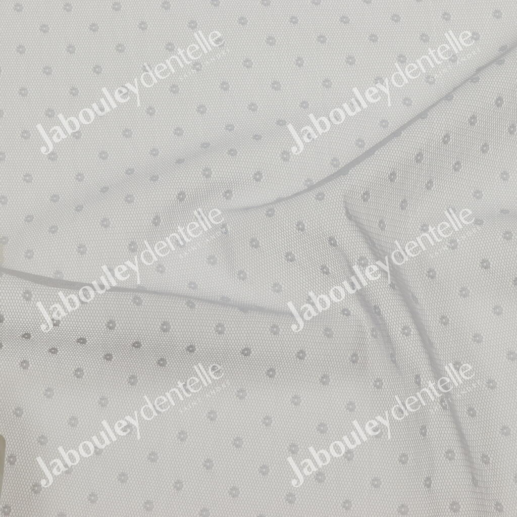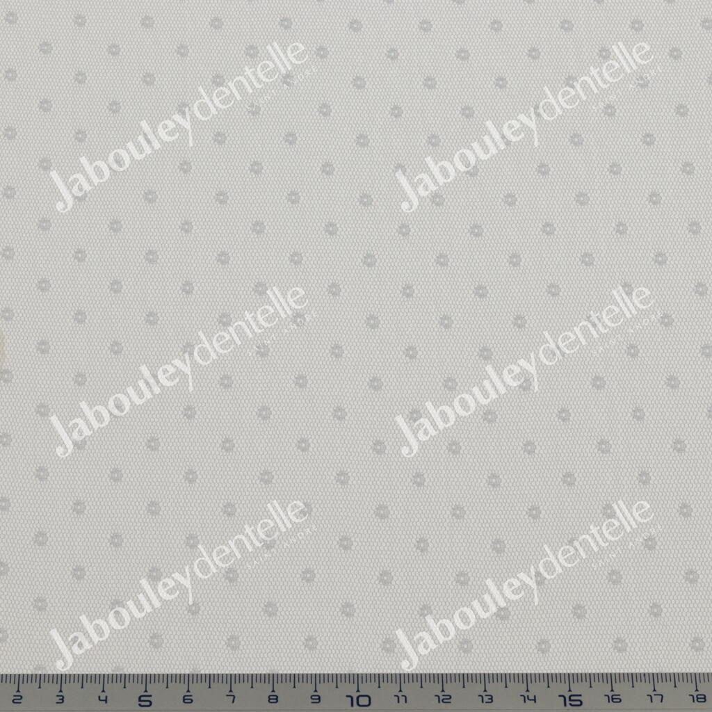 Dentelle Rachel en laize, rigide et fine, avec joli et original motif plumetis troué.