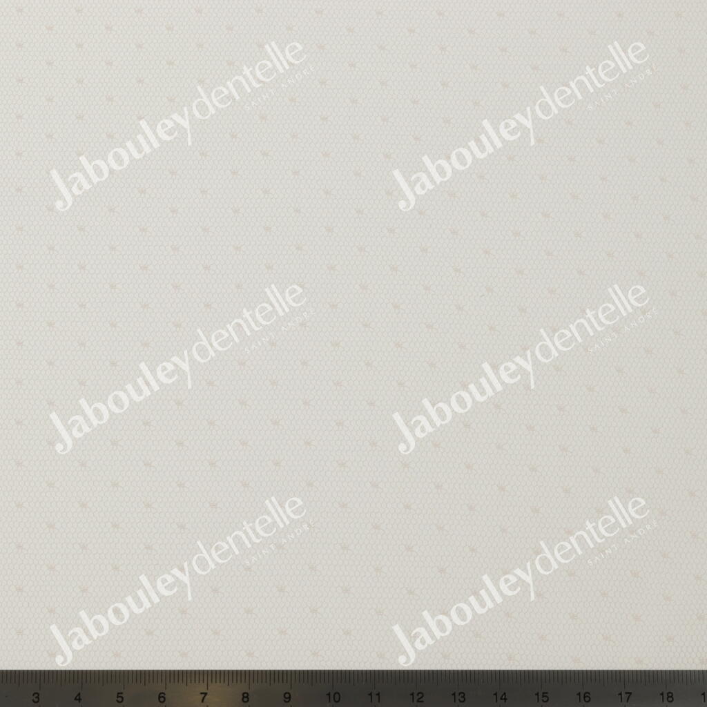 Dentelle Rachel en laize, rigide et fine, avec un joli et classique motif plumetis.