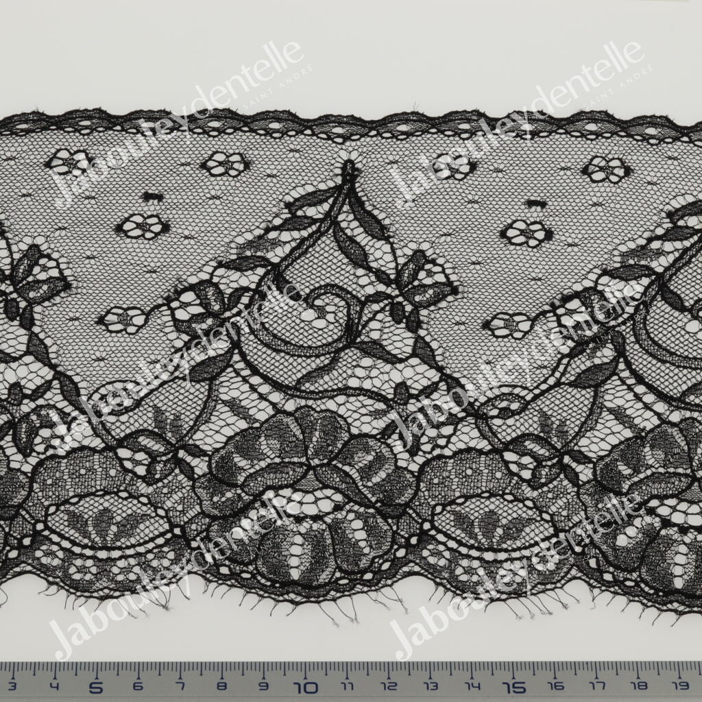 Bande de Dentelle Jacquard rigide, large et fine, avec joli motif floral central, entouré d'un magnifique plumetis.