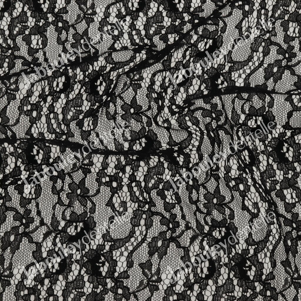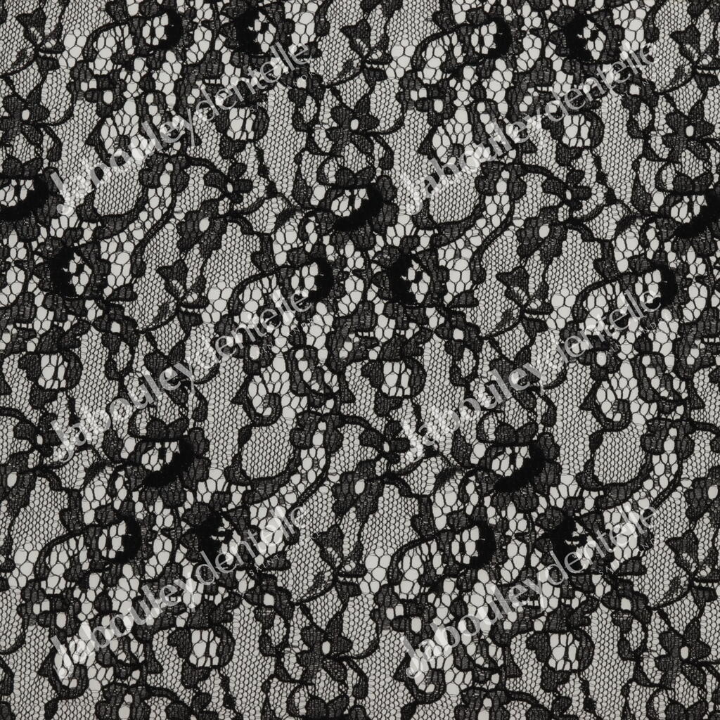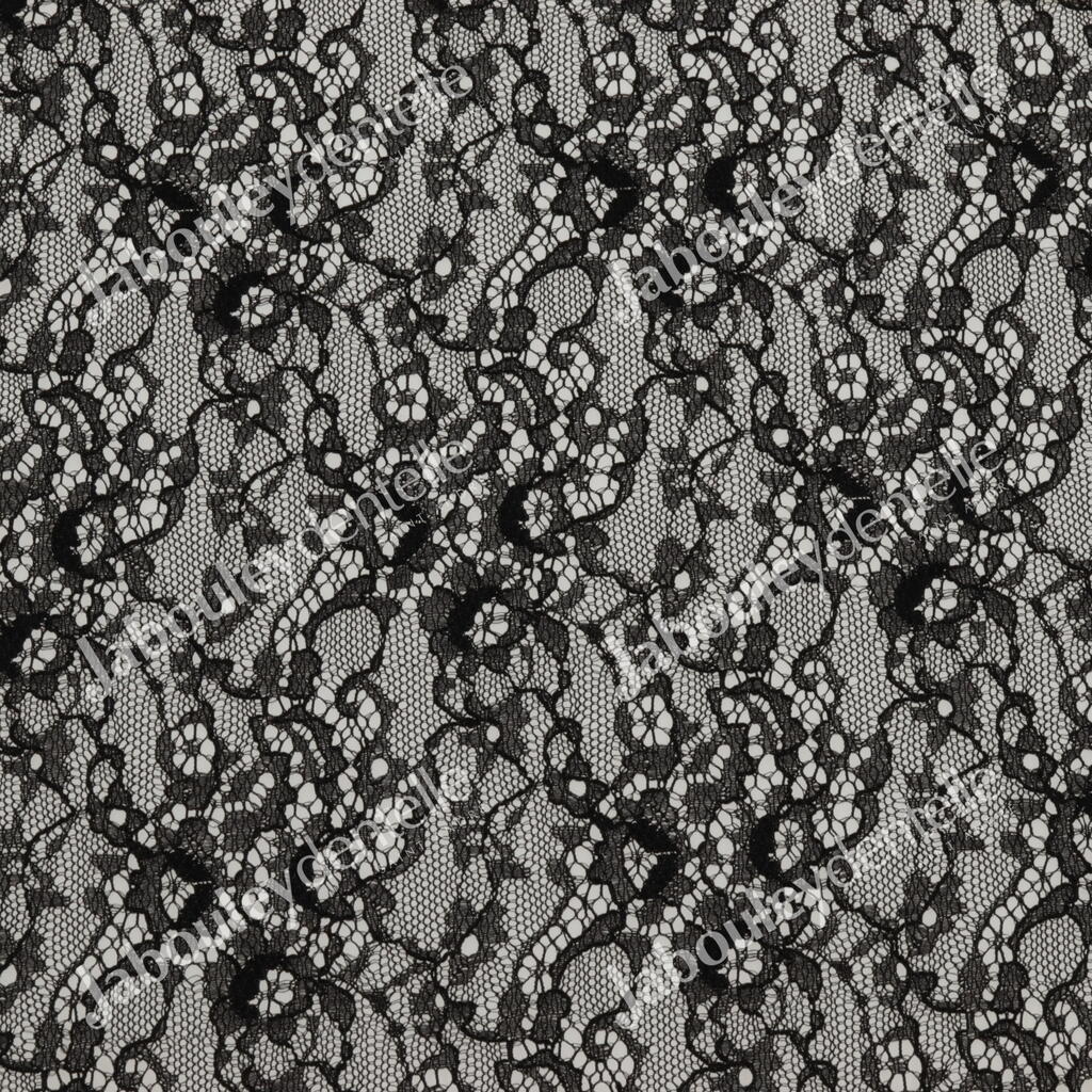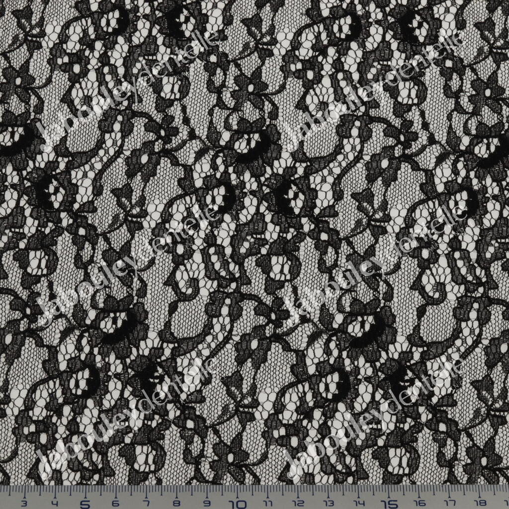 Dentelle Rachel en laize, rigide, avec un joli motif floral.