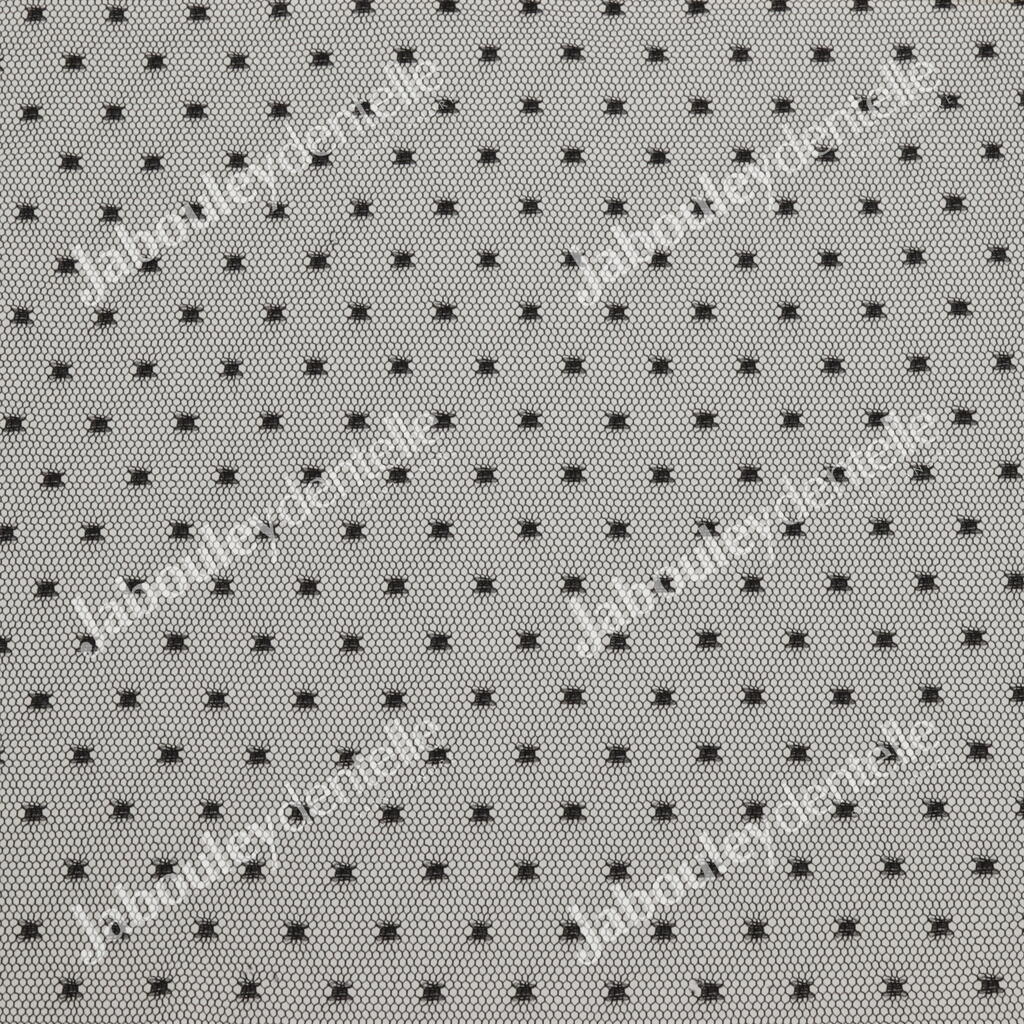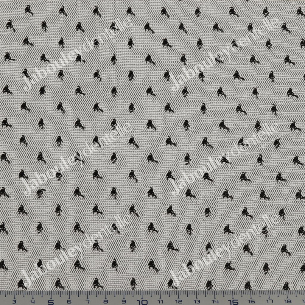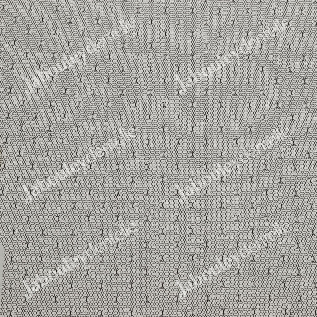 Dentelle Rachel en laize, rigide et fine, avec joli motif plumetis sur fond tulle très fin.