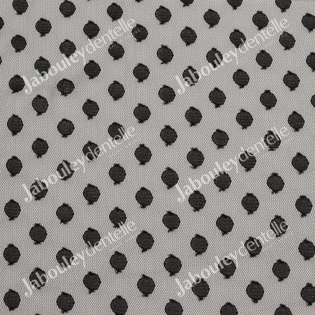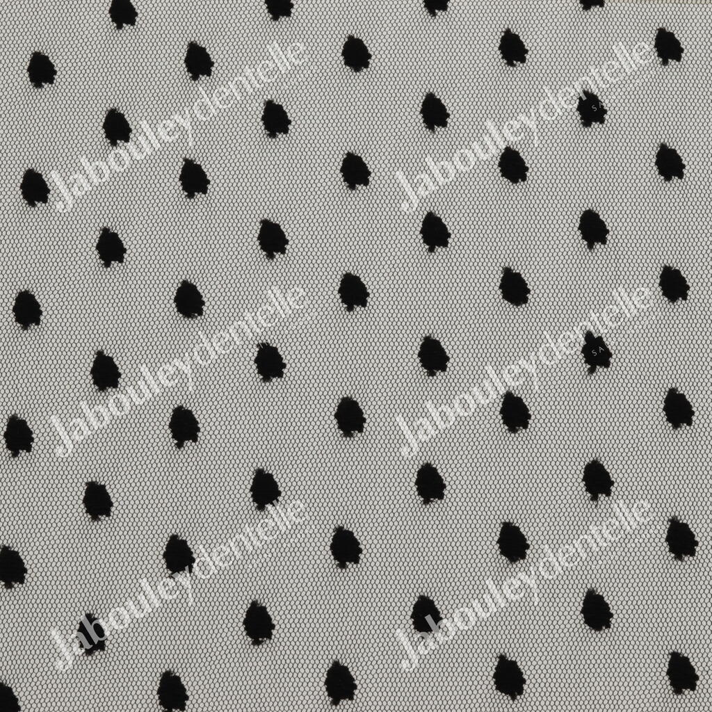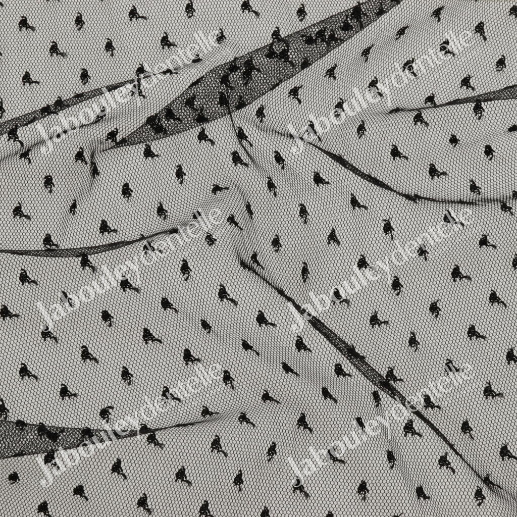 Dentelle Rachel en laize, rigide et fine, avec joli motif plumetis sur fond tulle très fin.