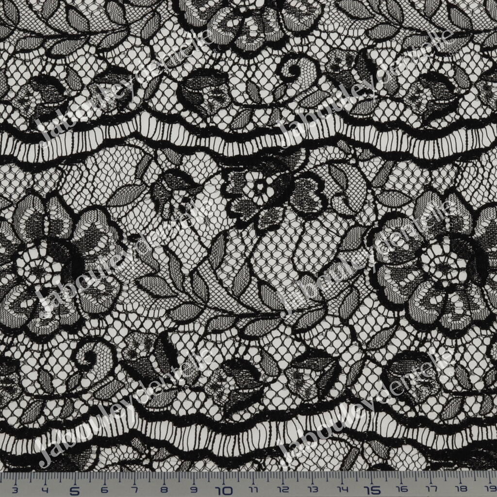 Dentelle Jacquard en laize, rigide, avec un joli motif floral.