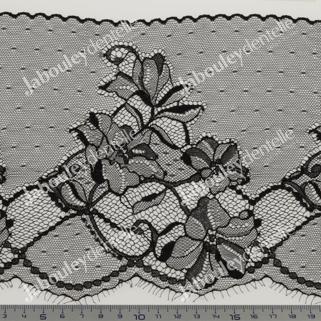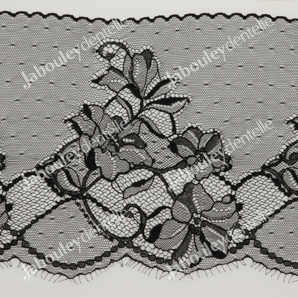 Bande de Dentelle Jacquard rigide, large et fine, avec joli motif floral central, entouré d'un magnifique plumetis.
