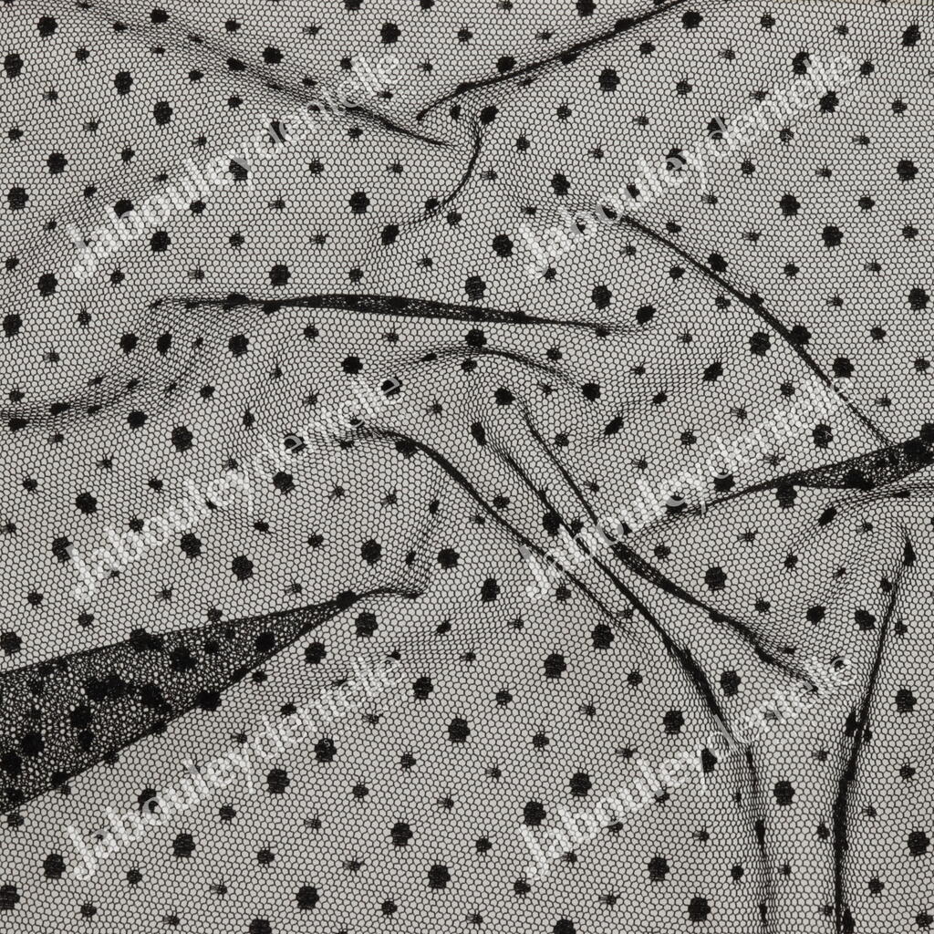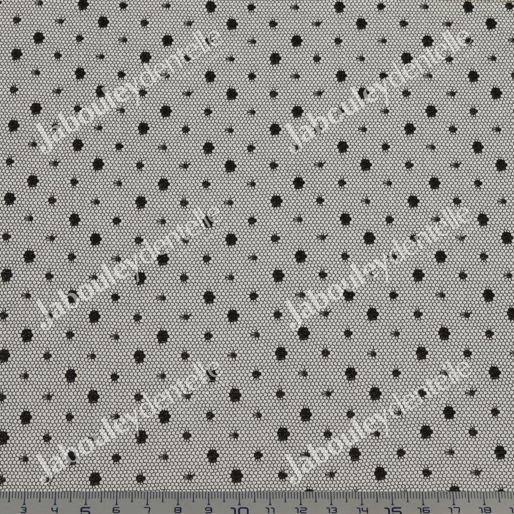 Dentelle Rachel en laize, rigide et fine, avec un joli motif plumetis à pois irréguliers.