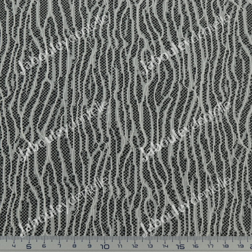 Dentelle Jacquard en laize, rigide et fine avec un joli motif zébré.