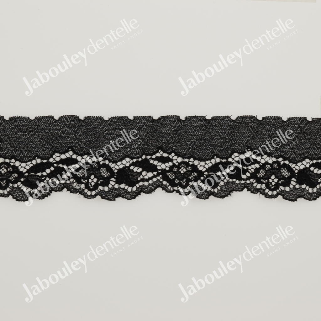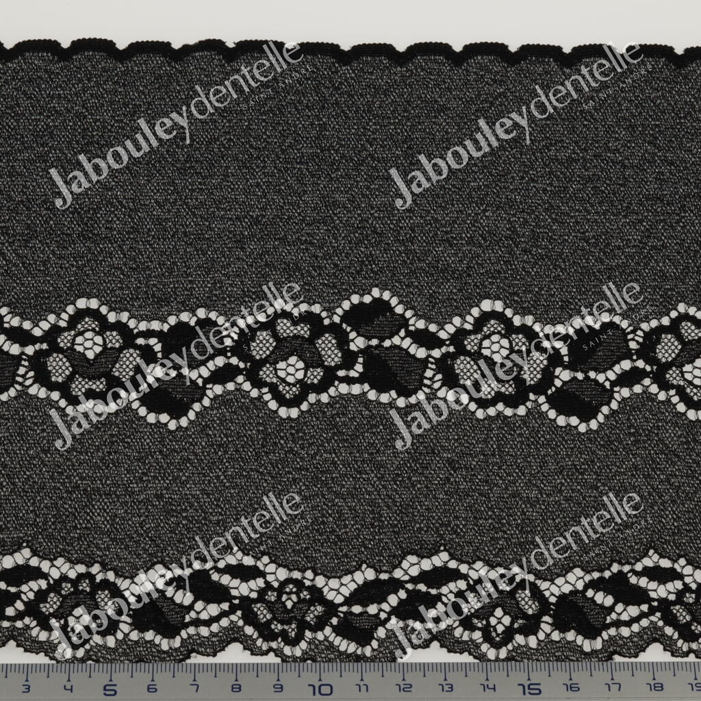 Bande de Dentelle Jacquard élastique, avec une alternance de fond plein chiné et d'un joli motif floral.