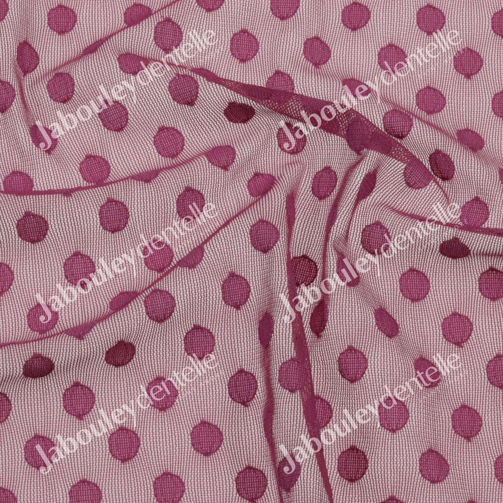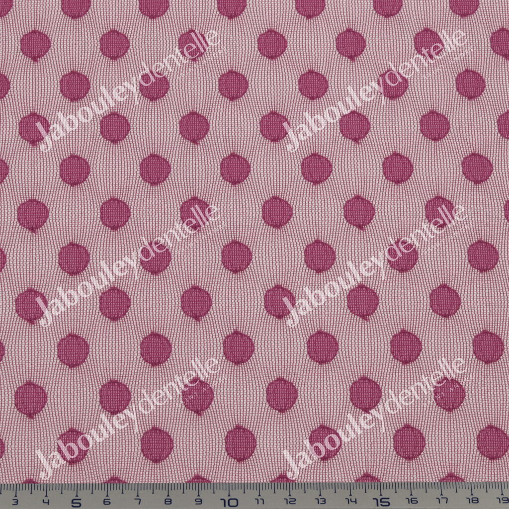 Dentelle Rachel en laize, élastique et fine, avec un joli motif à pois sur fond tulle.