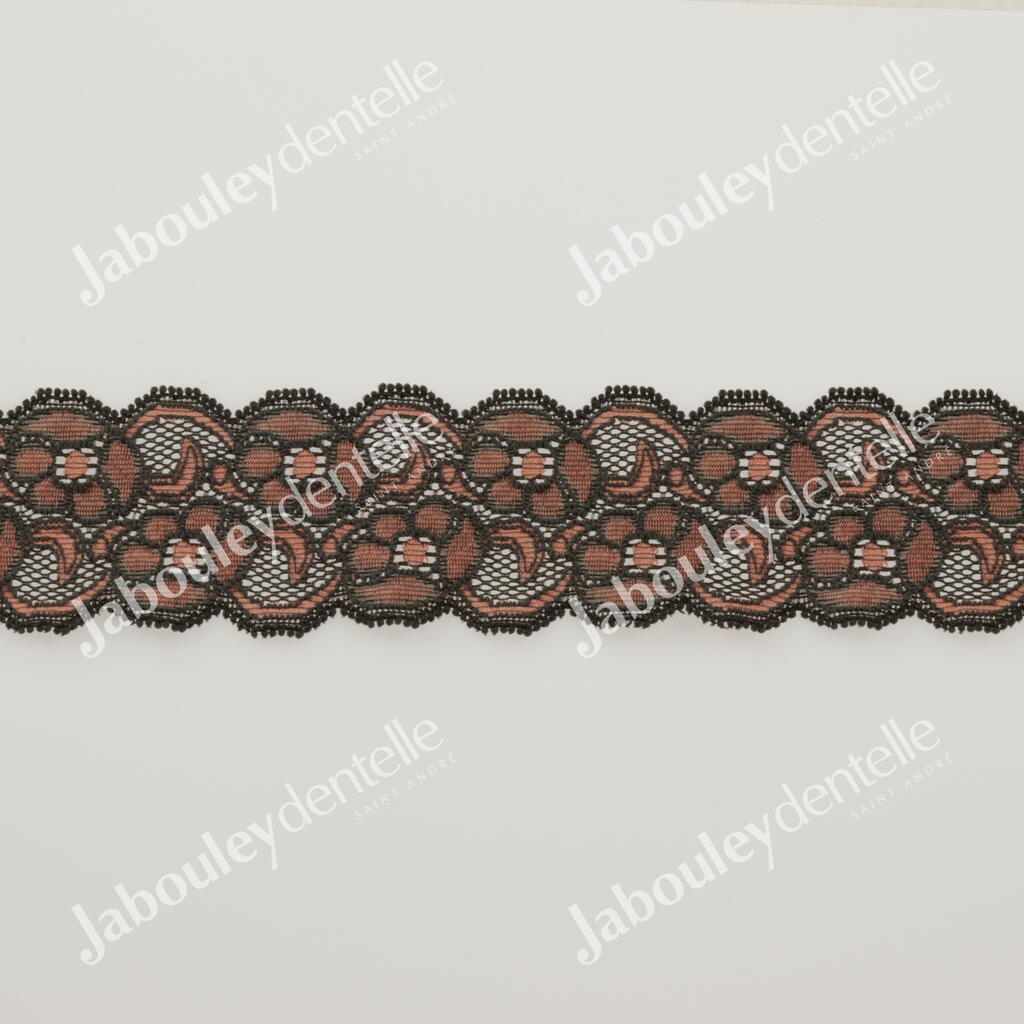 Galon de Dentelle Rachel élastique, avec un joli motif floral.