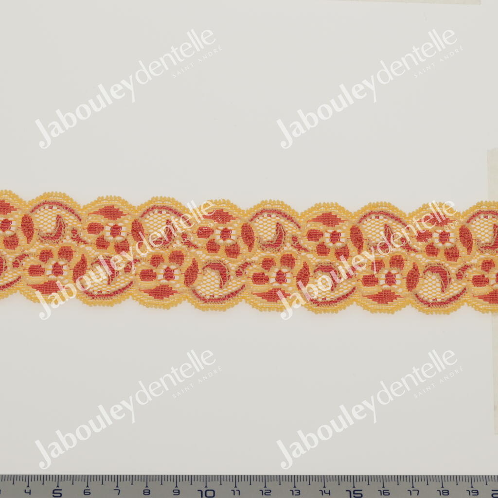 Galon de Dentelle Rachel élastique, avec un joli motif floral.