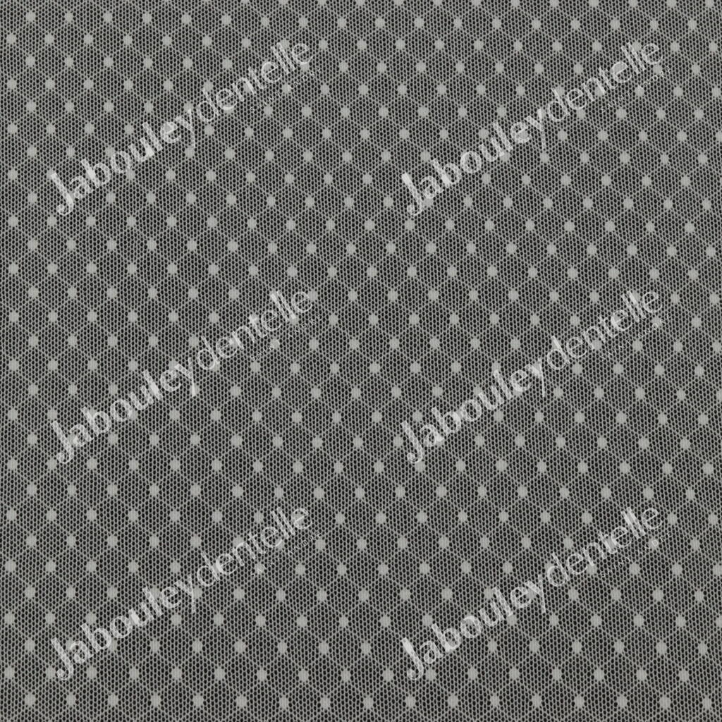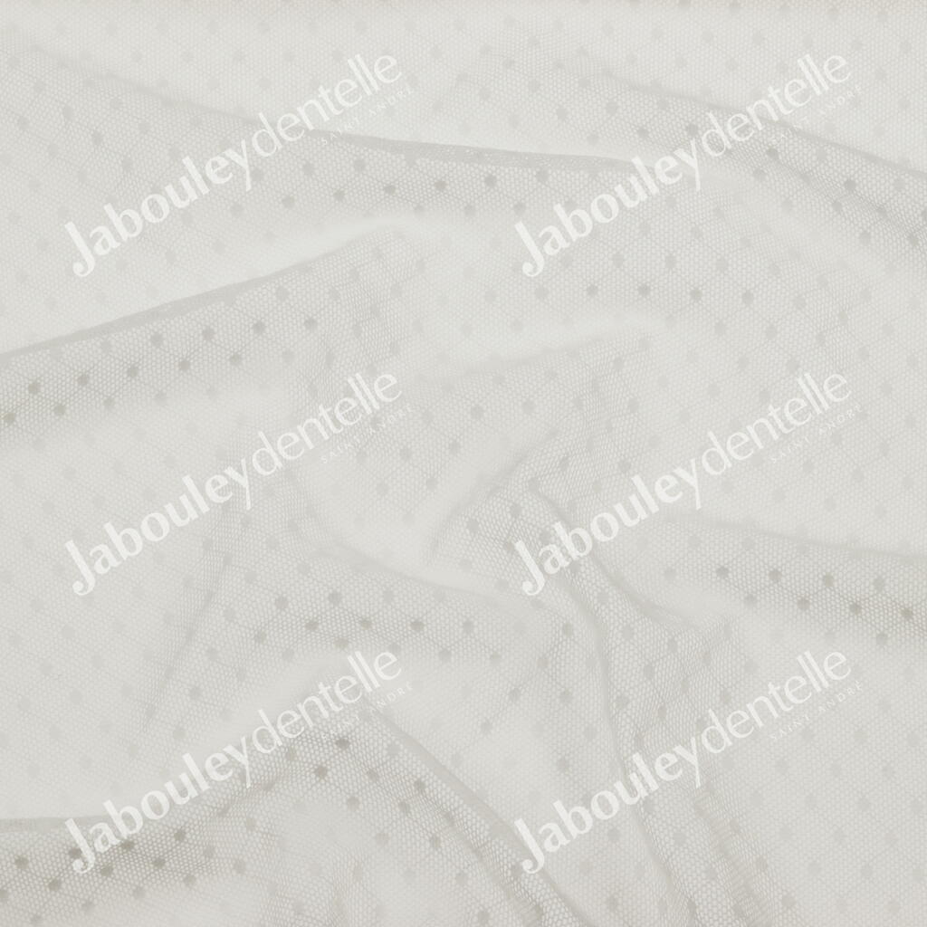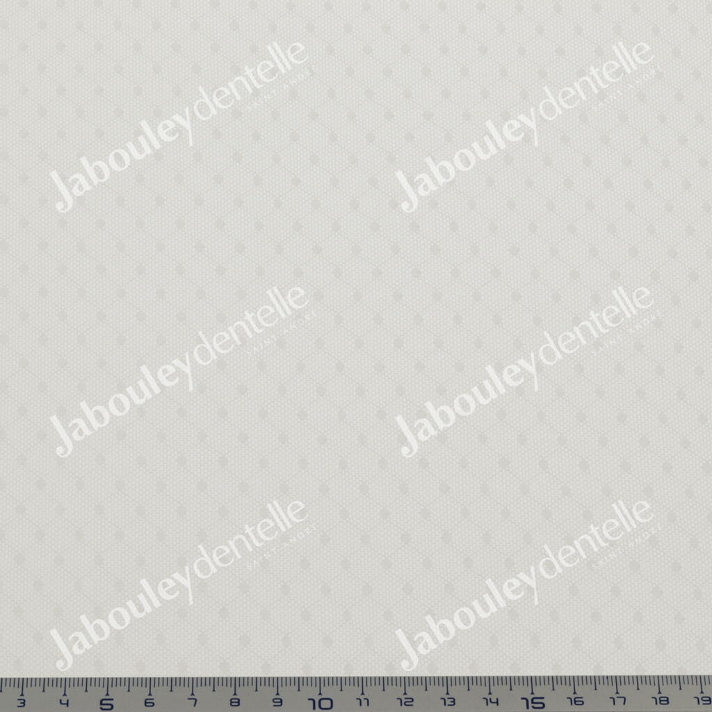 Dentelle Rachel en laize, élastique et fine, avec joli motif plumetis sur fond tulle.