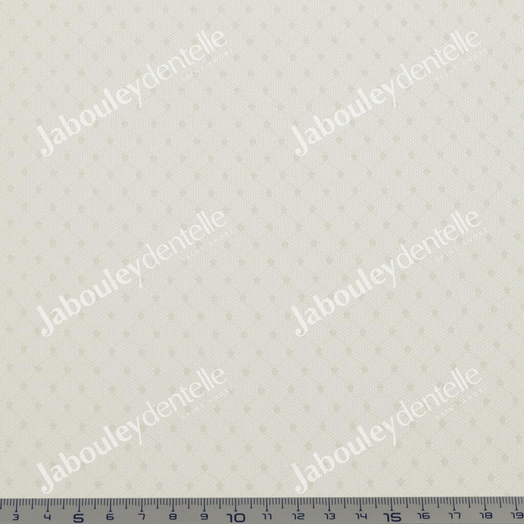 Dentelle Rachel en laize, élastique et fine, avec joli motif plumetis sur fond tulle.