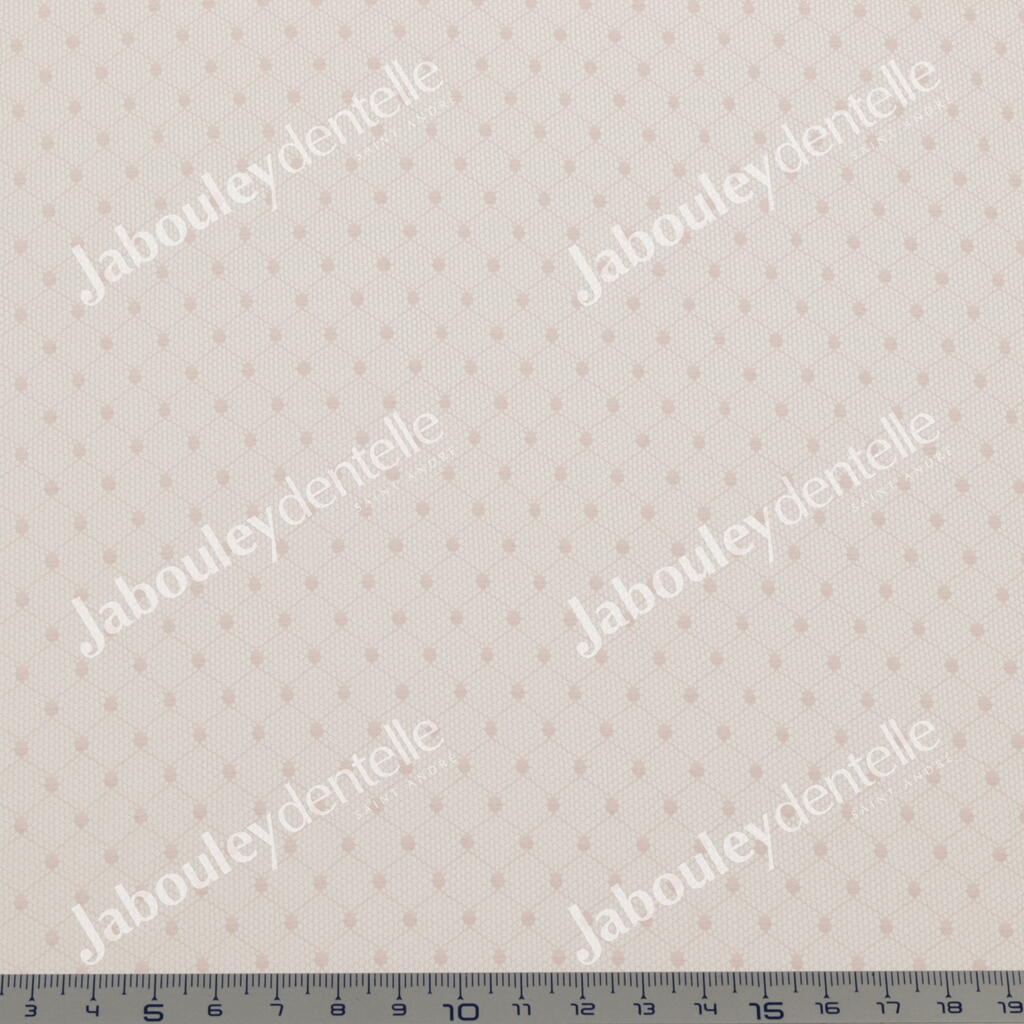 Dentelle Rachel en laize, élastique et fine, avec joli motif plumetis sur fond tulle.