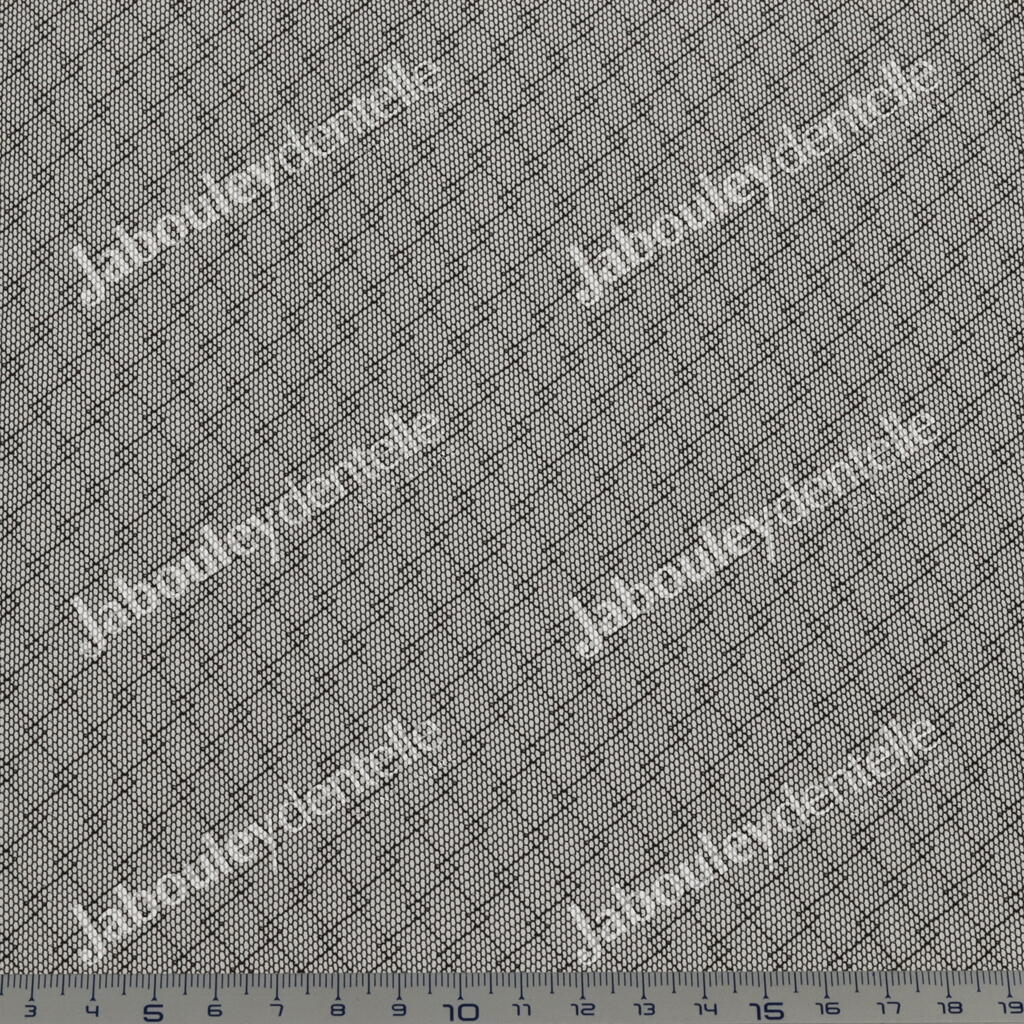 Dentelle Rachel en laize, élastique et fine, avec joli petit motif croisé sur fond tulle.