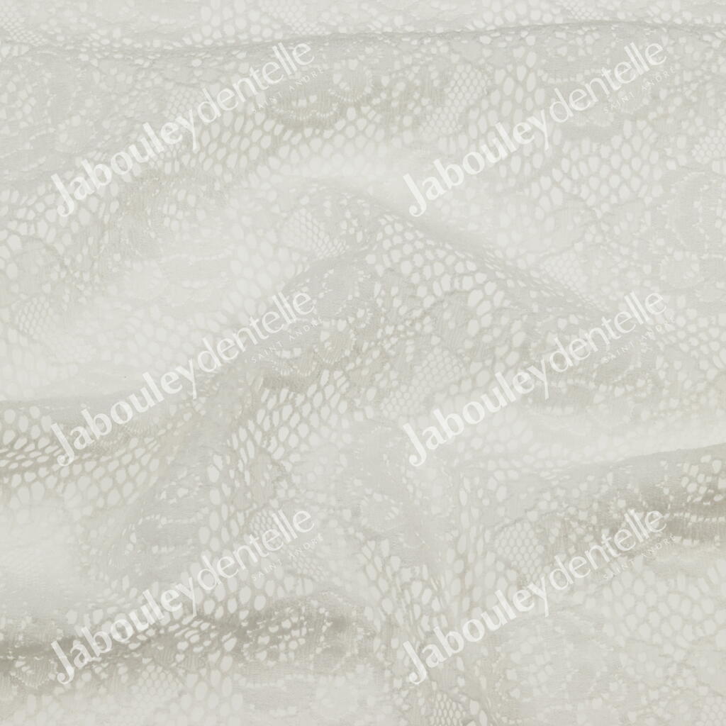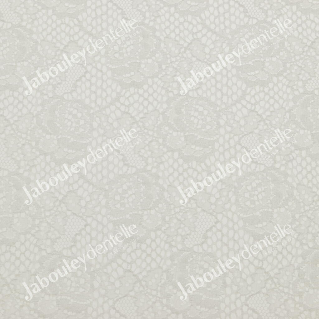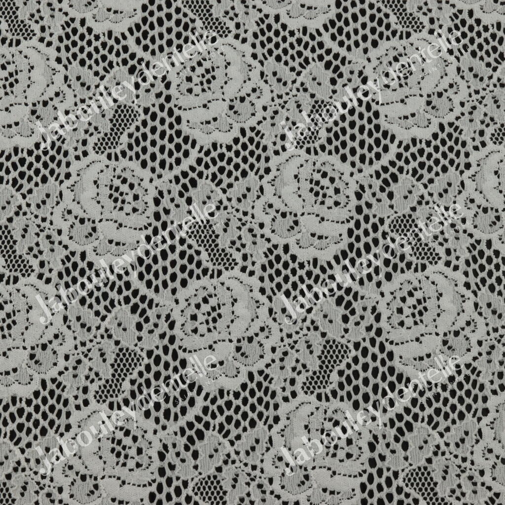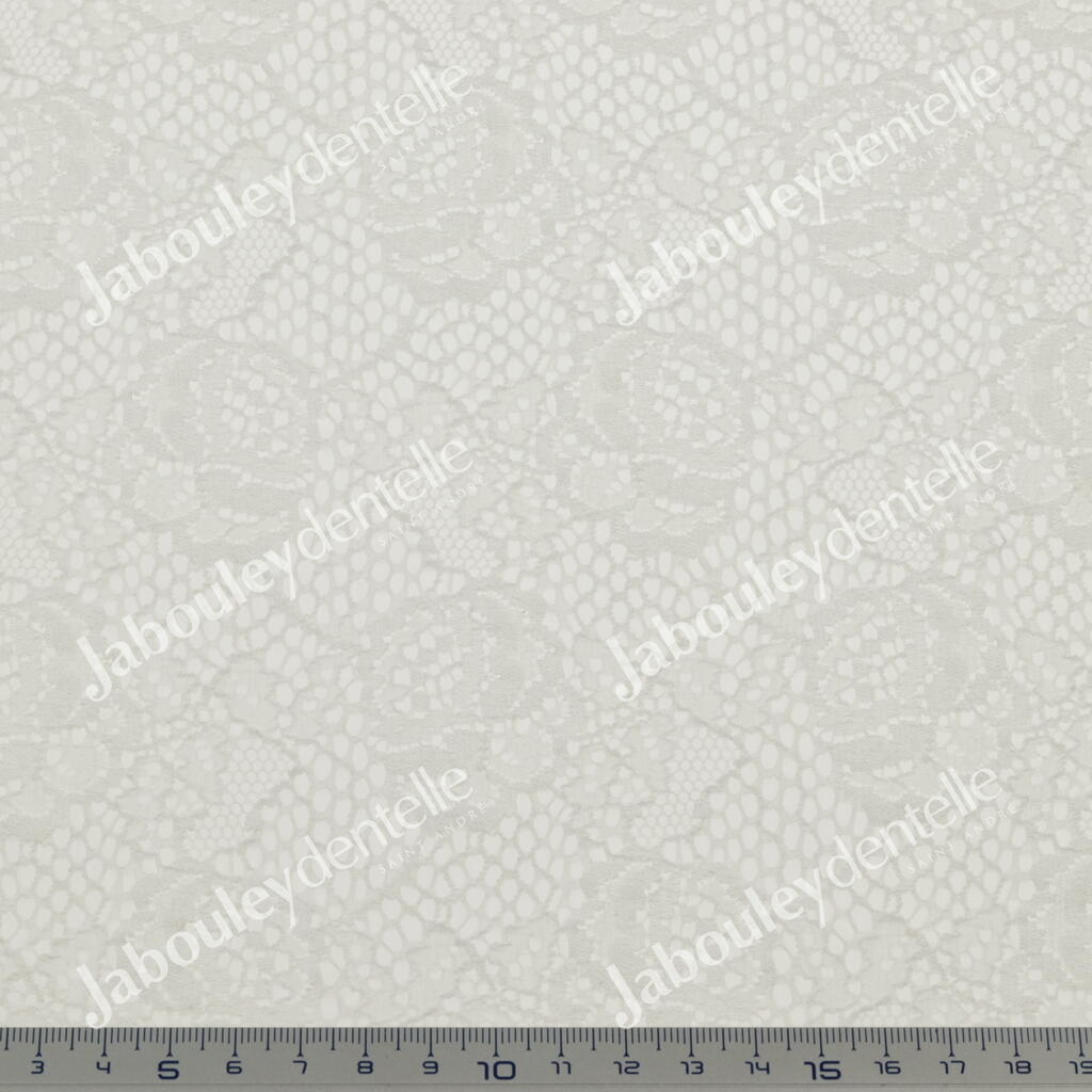 Dentelle Rachel en laize, élastique et fine, avec joli motif floral sur fond craquelé.